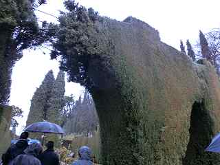 植木の苅込がアーチに見えるように手入れがされています。