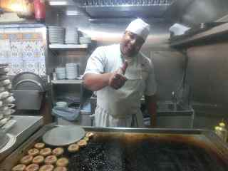 空中で回転するスパニッシュオムレツですよ。