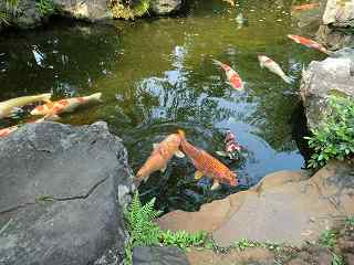 池に錦鯉です<゜)))彡