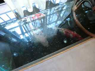 床のガラスから錦鯉が見えるんです♪
