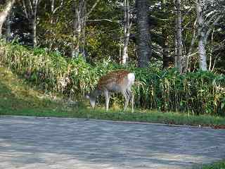 展望台入り口に エゾシカが・・・逃げないし(汗)