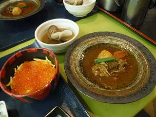 〆のいくら丼にエゾシカシチュー