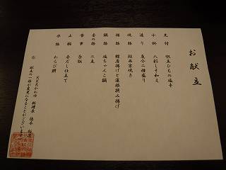 お品書きでお茶を濁します(爆)