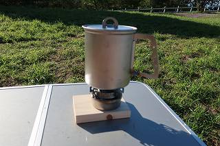 遊びで、アルコールストーブでお湯を沸かします