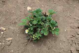 庭のイチゴに花が咲き始めています。