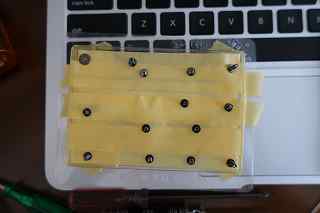 ミスが無いようにトレーにマスキングテープを貼りネジ位置を記録