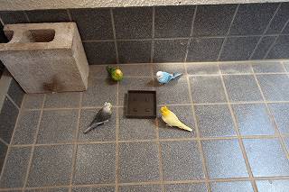 玄関先になぜかインコの置物が(@_@)