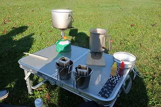 お湯用に、アルコールストーブを使います。