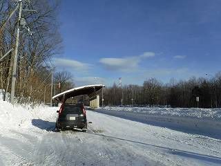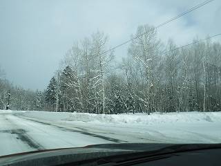 見えない道らしい雪道を走ります。