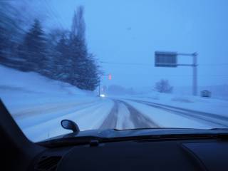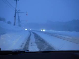 前の車に近づきすぎる巻き上げる雪で視界はゼロ(>_<)