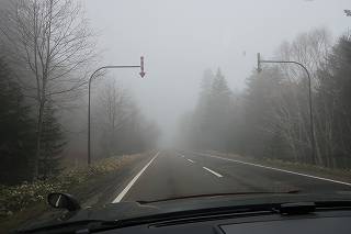 阿寒横断道路は濃霧でした。