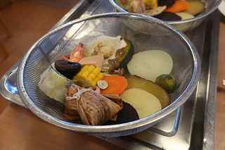 順番が来たら、食材を受け取り蒸し窯に移動