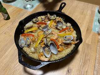 夕飯は、パエリアでした♪