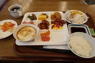 朝食中にホテルの散策路を歩く話をしてました