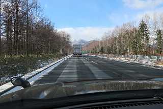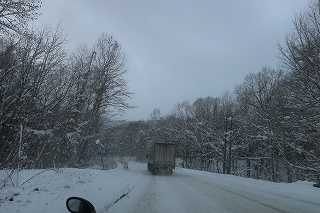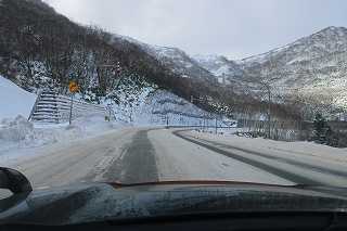 今年初めての雪道に突入します。