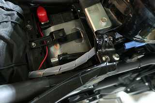バッテリー近くは、スパイラルチューブで保護