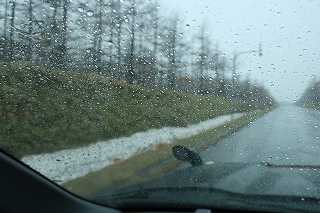 路肩にはかなりンお雪がありますし・・・雨が凄いです(汗)